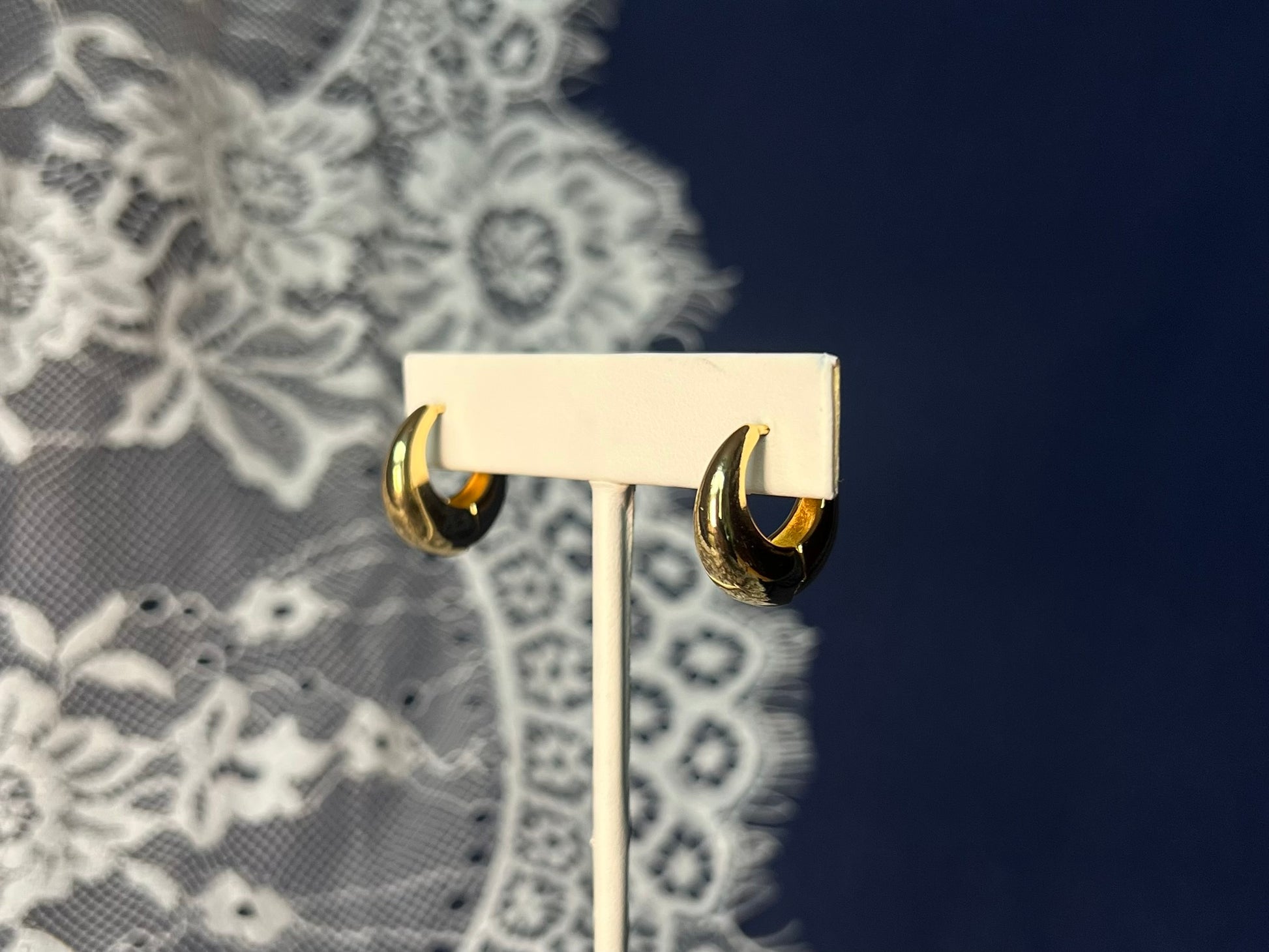 Gold drop hoop earrings, lightweight and durable for everyday use. The earrings and hardware are 18kt gold-filled, which is tarnish-resistant and waterproof.