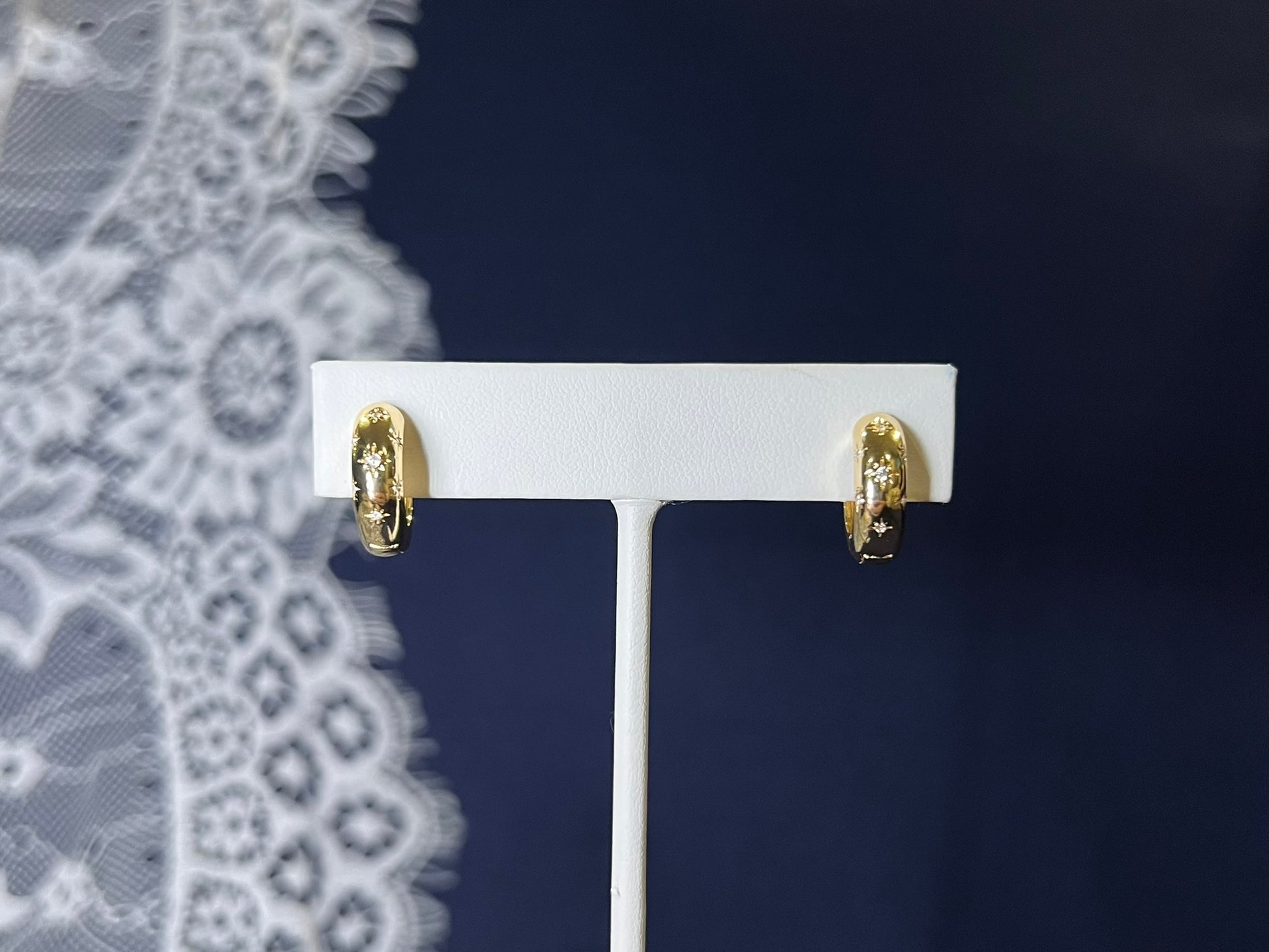 22mm hoop earrings with rhinestone stars. The earrings and hardware are 18kt gold-filled, which is tarnish-resistant and waterproof.