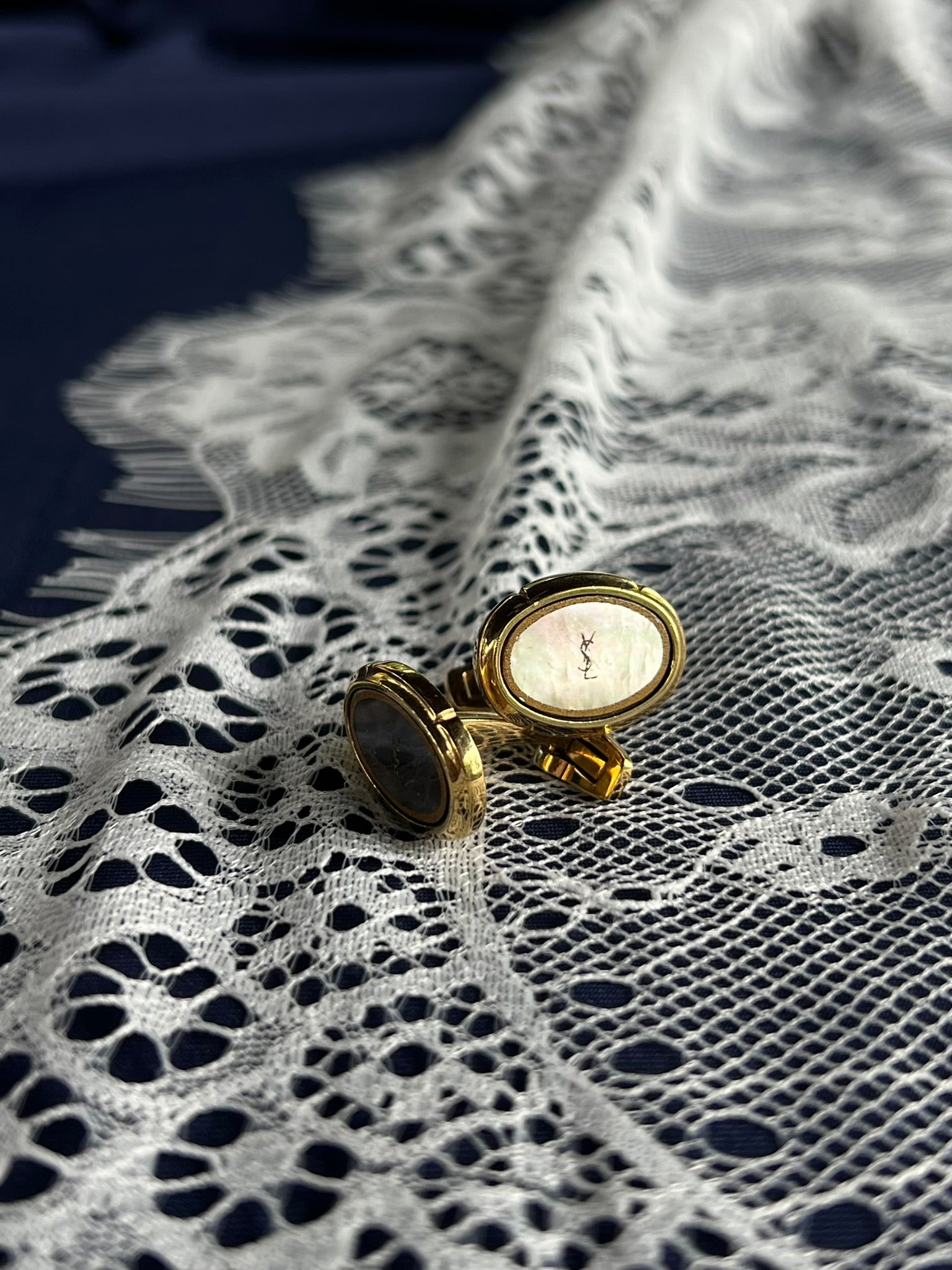 Vintage YSL cuff links. All of our vintage designer products are pre-loved. We quality check all of our products before selling, but slight variation and/or irregularities (such as scuffing or discoloration) may be present.
